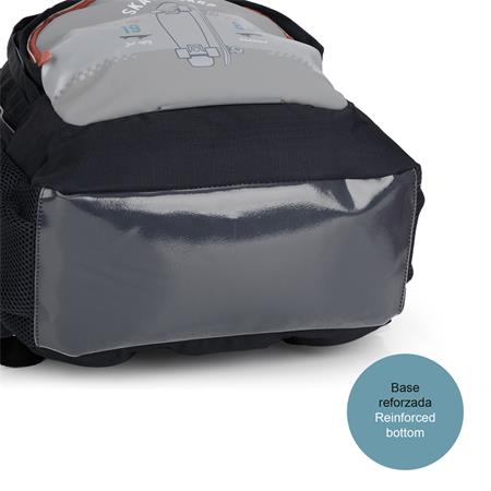 Hátizsák, iskolatáska, cipzáras, GABOL "Trick", szürke-fekete, gördeszka