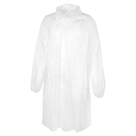 Látogató köpeny, egyszer használatos, polipropilén, tépőzáras, M méret, fehér